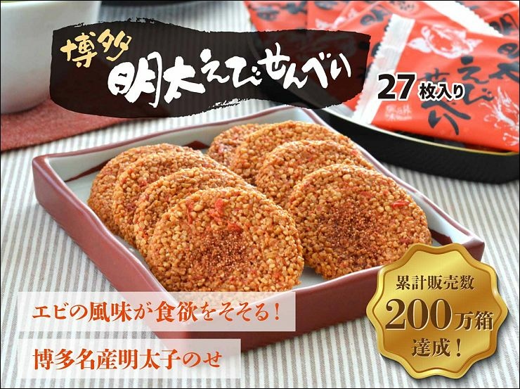 日本博多明太子蝦餅禮盒組熱銷突破200萬箱,嚴選日本國產米,使用獨家特製方法,將米與明太子、蝦米結合製作成酥脆口感。