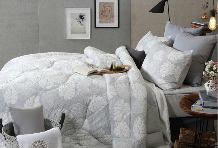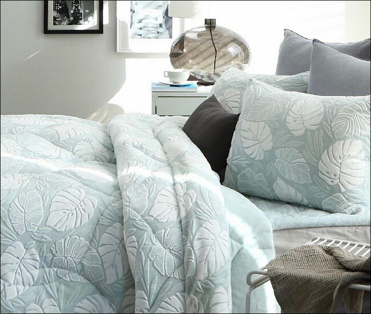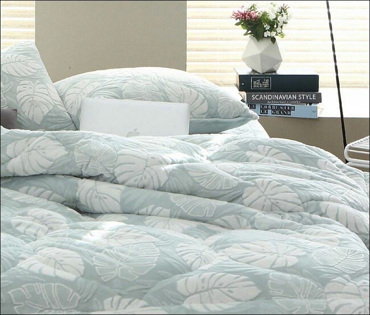 莫代爾棉保暖冬被/雙面圖案晨藍樹葉(社長最愛的絲滑觸感,但這款相對薄,比較適合不怕冷跟中南部鄉親);