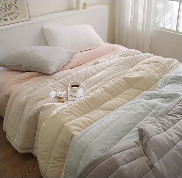 粉色是很多女主人的首選,韓國棉被的最大特色就是一件買來就可直接當棉被+被套二合一使用,外層是超級細絲纖維,內裡舖滿人工棉花,外面加車壓紋棉花不會跑掉又可直接機洗,不用另外再裝被套,更不用擔心被套尺寸不合的問題,一件即可蓋的舒舒服服~