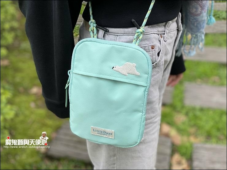 實際帶出門使用過後我還蠻喜歡這個包款的!前面兩個拉鏈袋夠深好用,不是只是裝飾用!!