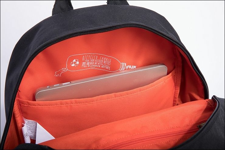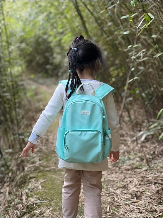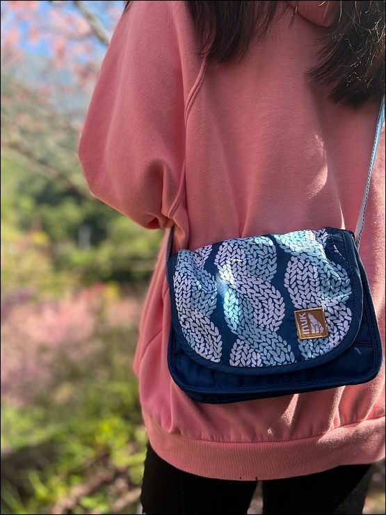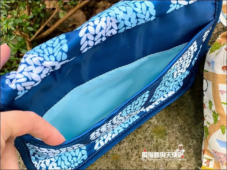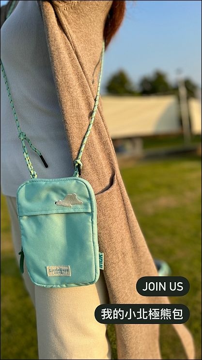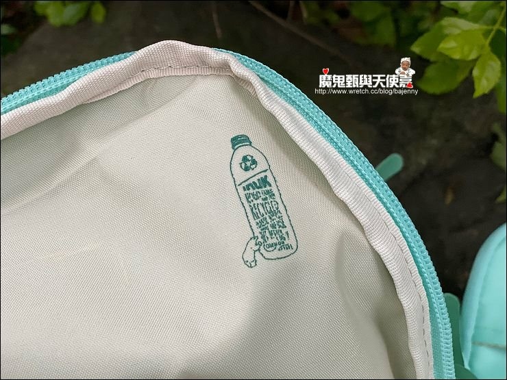 他們家的小包都很能裝,之前團友來回饋說帶著小孩去遊樂園,說裡面裝了瓶裝水、小風扇、錢包等,還熱心提供照片),我喜歡內袋裡環保材質的標示圖案。