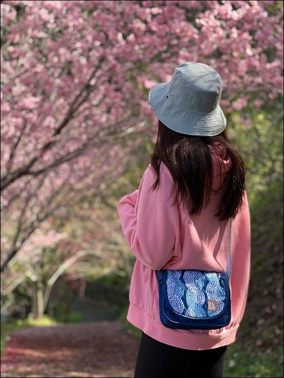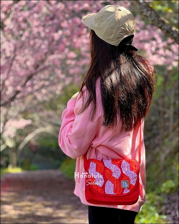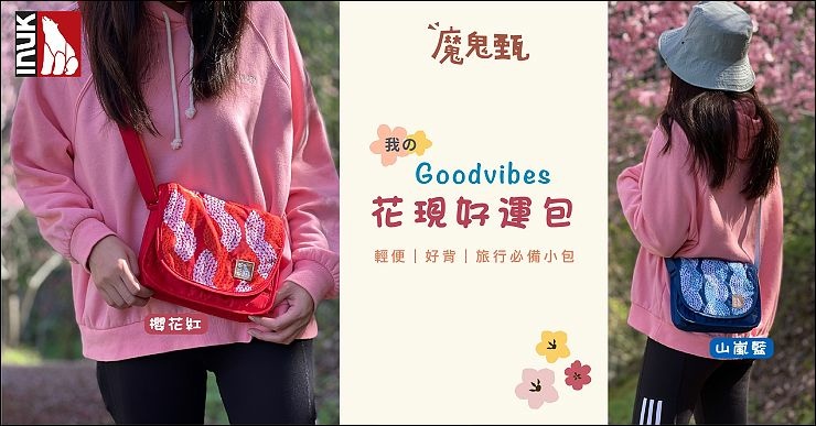 good vibes 花現好運小包,有櫻花紅和山嵐藍兩色,是女孩兒外出隨身的好伴,隱藏磁扣設計加上剛剛好的分隔夾層,輕便出門整個造型加分。