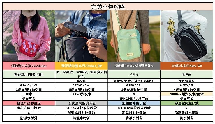 這次團購品項共有2022春季最新八款+2021升級改良版6款包型,新款包的兩款小包社長特愛!!