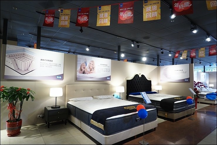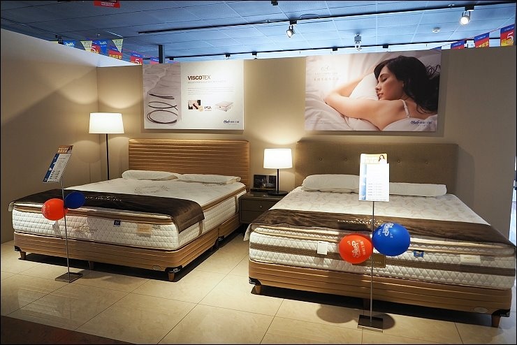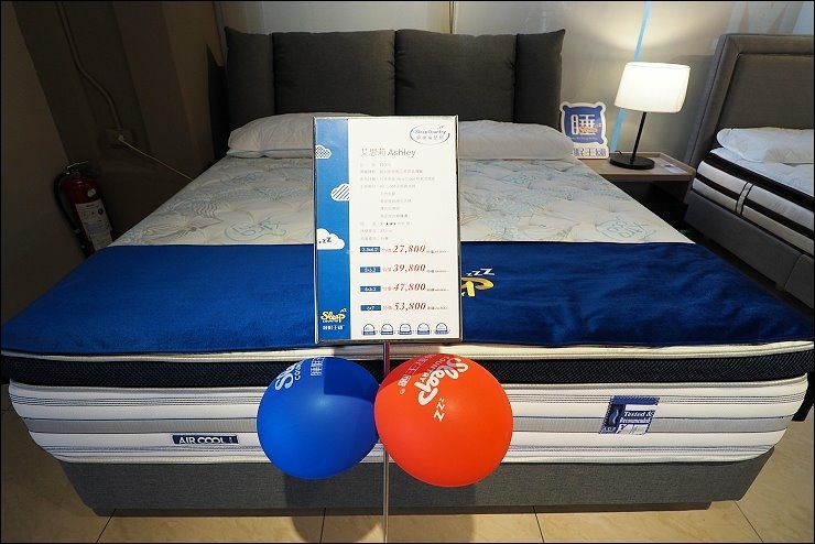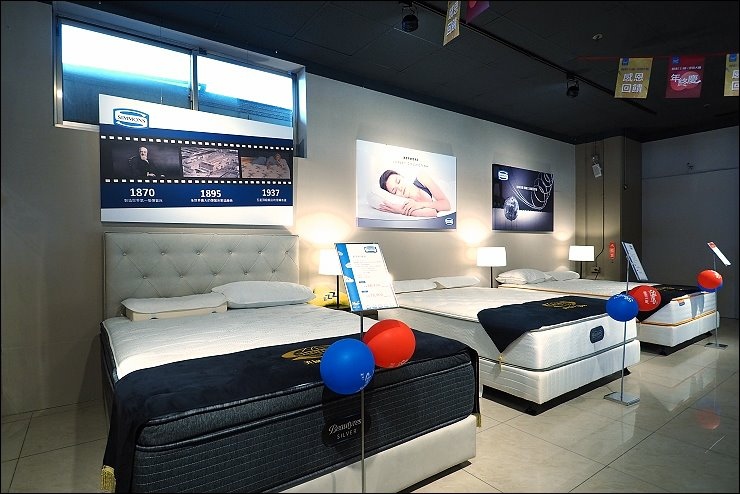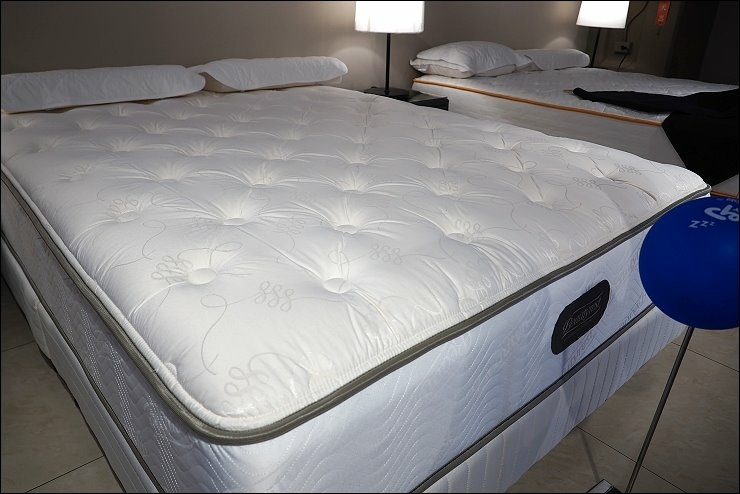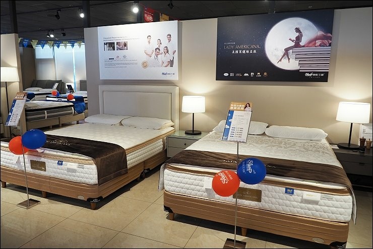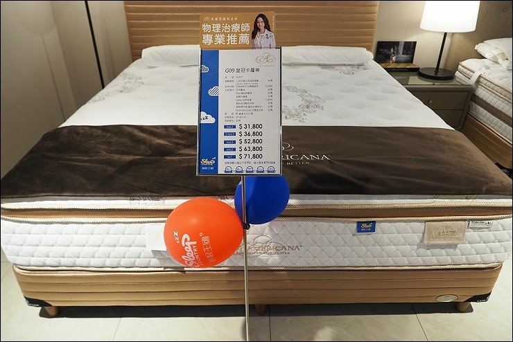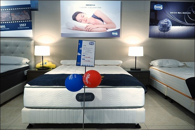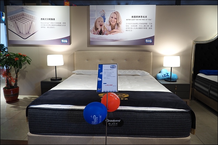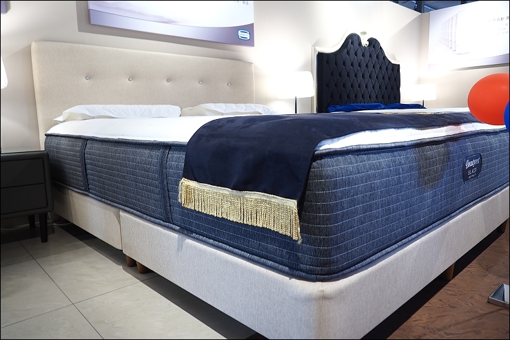 首先看的是名床席夢思,美國原裝貨櫃直達!睡眠王國從美國工廠大量進口原裝席夢思,省去中盤層層加價,讓消費者可以用用批發價入手星級飯店指定床!這款「星鑽」是飯店專用款,是使用Beautyrest 獨立筒袋裝彈簧,表布是奈米涼感透氣布,主要襯材有舒適柔軟抗菌棉、Air Cool涼感記憶泡棉、銀離子纖維彈性棉,並且加強BeautyEdge透氣式涼感護邊結構,試躺感覺很舒適,料子涼爽,夏天睡覺比較不會悶熱,怕熱的朋友可以考慮這款。