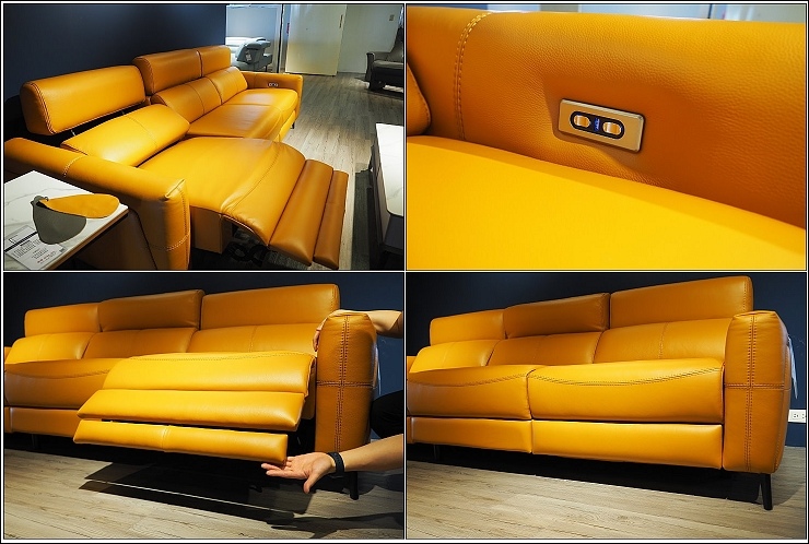 Louie路易全牛皮電動沙發,實不相瞞,這是我第一次接觸電動沙發,真是讓我驚艶!沙發調整斜度只要動動手指頭就好,超方便,還有USB插座方便手機充電。電動頭枕無段式調整不受限,腳部抬升設計幫助腿部舒壓。這款電動沙發設計不是直接落地式椅腳,看起來還滿時尚的!沙發的坐墊前緣還有微笑車線的設計,避免磨到大腿,提升舒適度,魔鬼藏在細節裡呀!