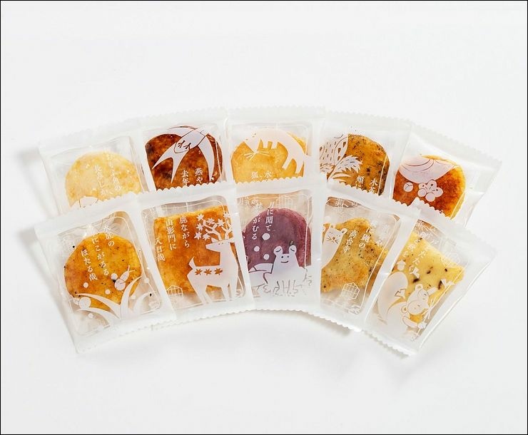 日本蕪村庵另一款十色詩仙貝禮盒,依四季的季節做成十色詩俳句的包裝設計,並且製作出十種不同口味的仙貝。