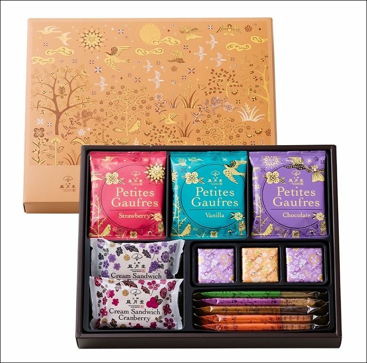 上野風月堂(中秋限定禮盒)的是香草,草莓,巧克力各4袋,總共12袋(24枚);