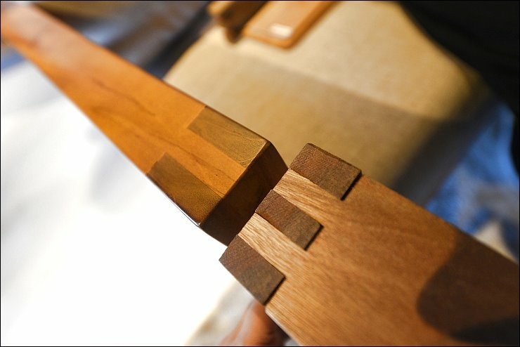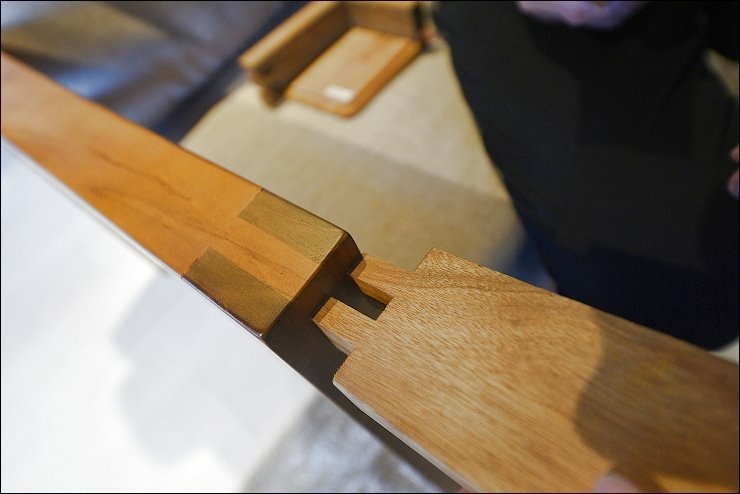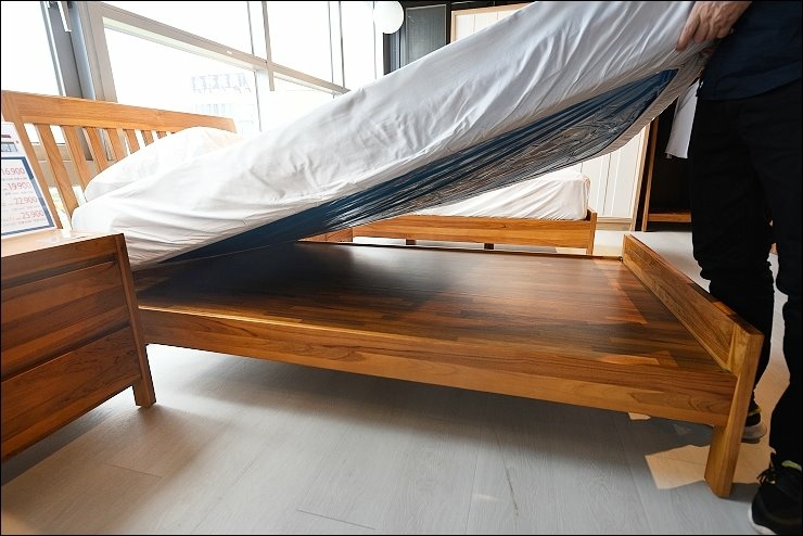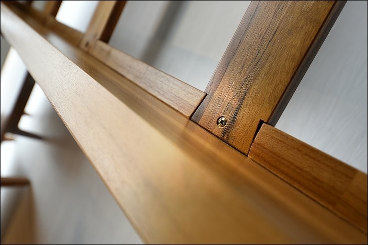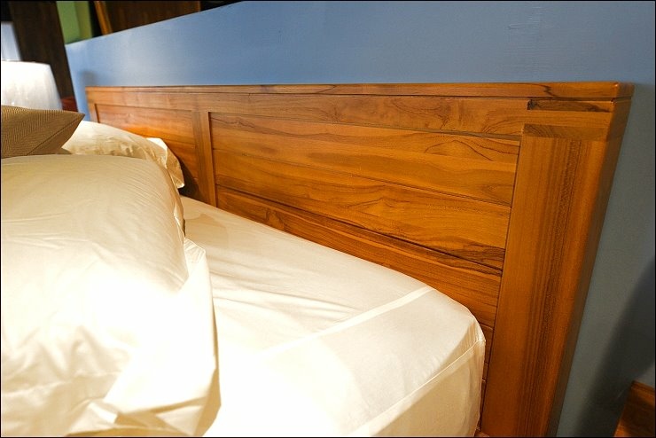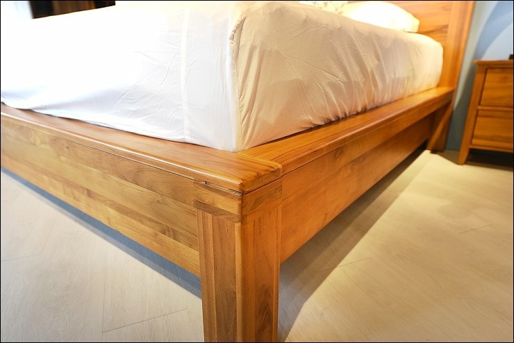 這張床台也值得一提!床框是寛板的設計,接合處都是使用榫接固定技術,相對牢固!床頭的柚木有一定的厚度,真材實料,耐看又實用,伸手觸摸床框,觸感相當舒服,好柚木就是這麼吸引人!