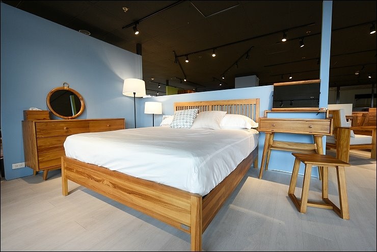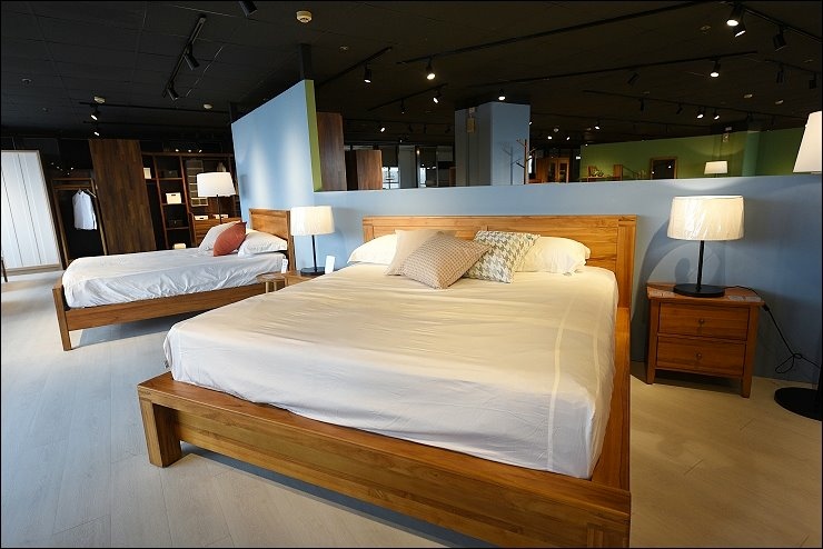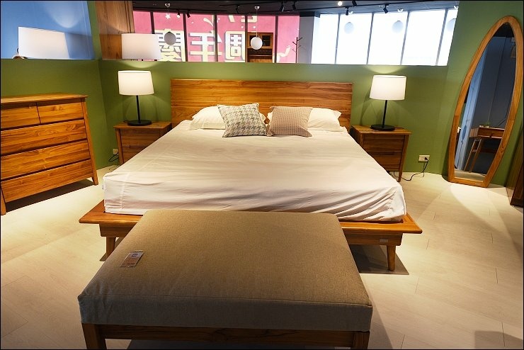 這張雙人床台不但是有床框設計,床腳不是方型而是圓型,多了份圓滑度,光是床台就有多款造型,柚木家具擁有天然的芬香,像是把森林裡的天然氛多精搬進家裡淨化房間,晚上睡眠品質無形中很有幫助。