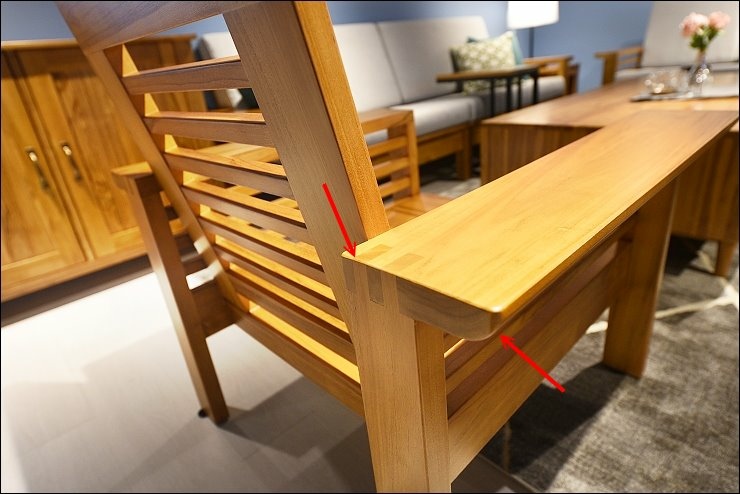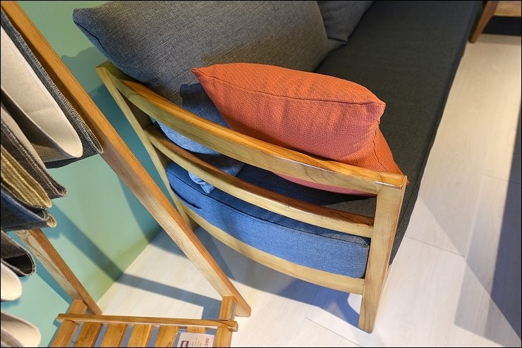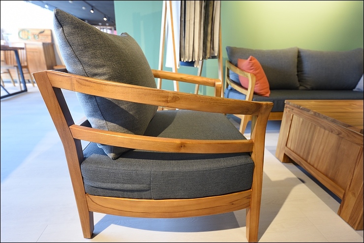 這張單人沙發好漂亮,柚木的顏色與紋路就是美,而且它的尺吋是加大的,較一般單人沙發來的深,聽專業的店員解說,有人盤腳坐在這兒打坐,靜靜地聞著天然的柚木香,達到歲月靜好的層次!必需要表揚的是歐克斯使用椎接技術+木榫技術,完全沒有使用釘子!!!