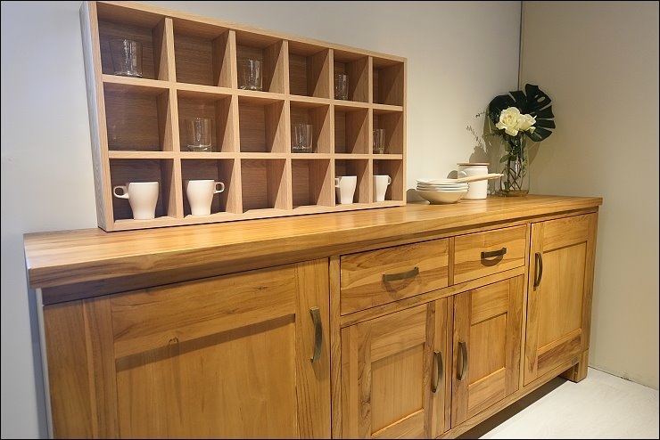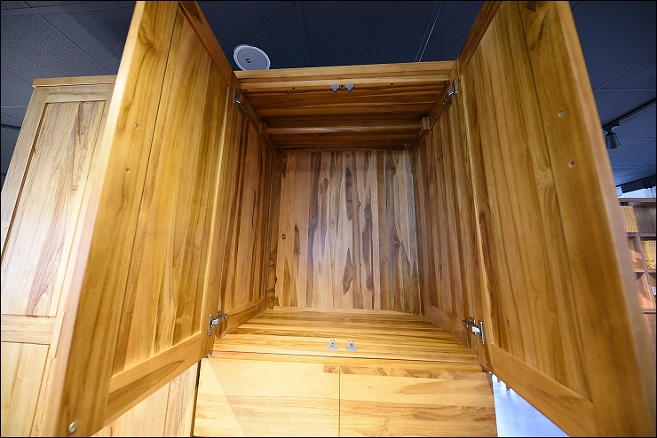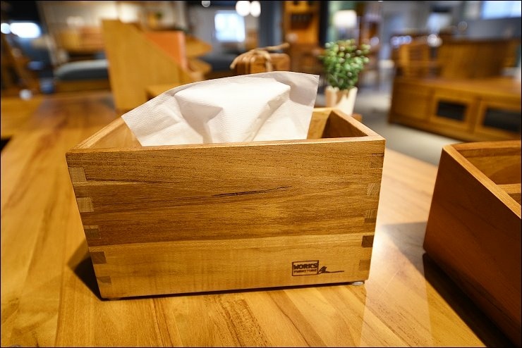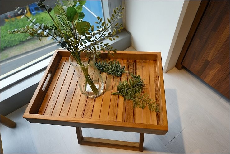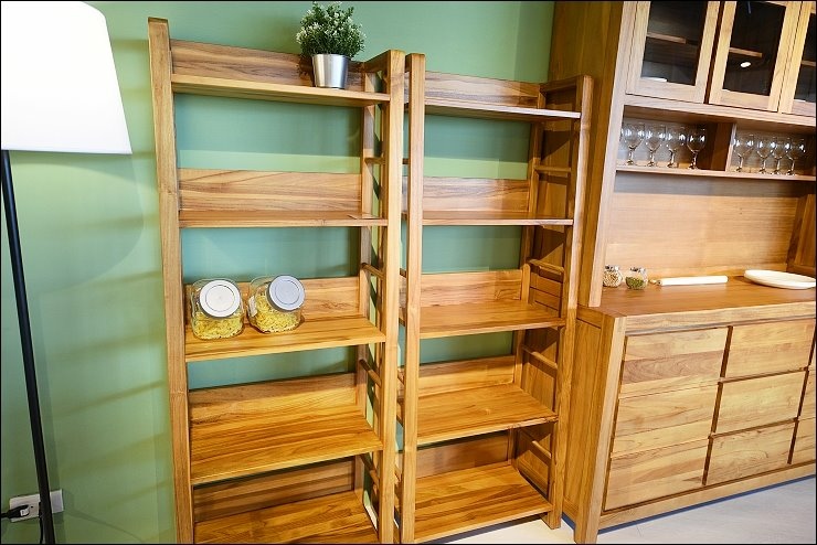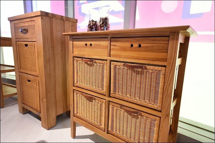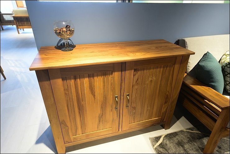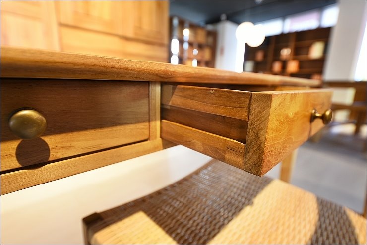 歐克斯柚木的餐櫃、收納櫃、鞋櫃、茶几、斗櫃等柚木傢俱,大多都是用傳統工法榫接技術,抽屜不使用五金滑軌,造形也很設計感,耐用又美觀。