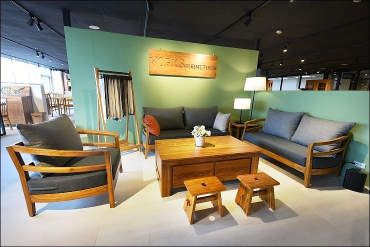 WORKS FURNITURE歐克斯柚木是屏東傢具製造大廠,從屏東起家,高雄、台南、嘉義、台中一路往北拓展,現在終於插旗台北啦,位在台北市內湖舊宗路一段288號5樓,開車很方便,免找停車位直接停店門口,一樓是睡眠王國旗艦館,二~四樓是沙發大師,五樓是WORKS歐克斯柚木,整層樓包含餐桌椅、餐櫃、電視櫃、茶几、沙發,衣櫃、床架等等,品項眾多又多元,非常好逛。