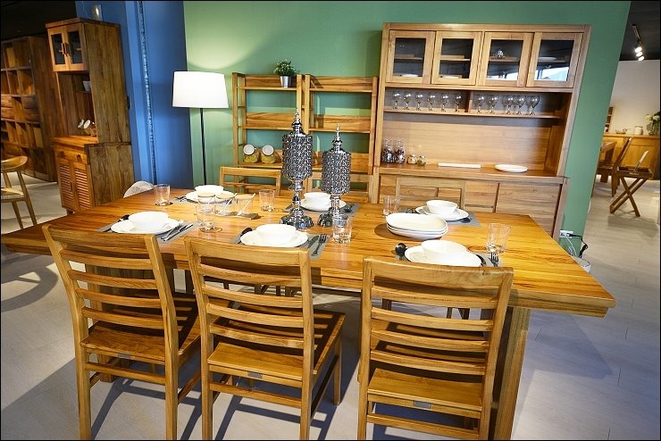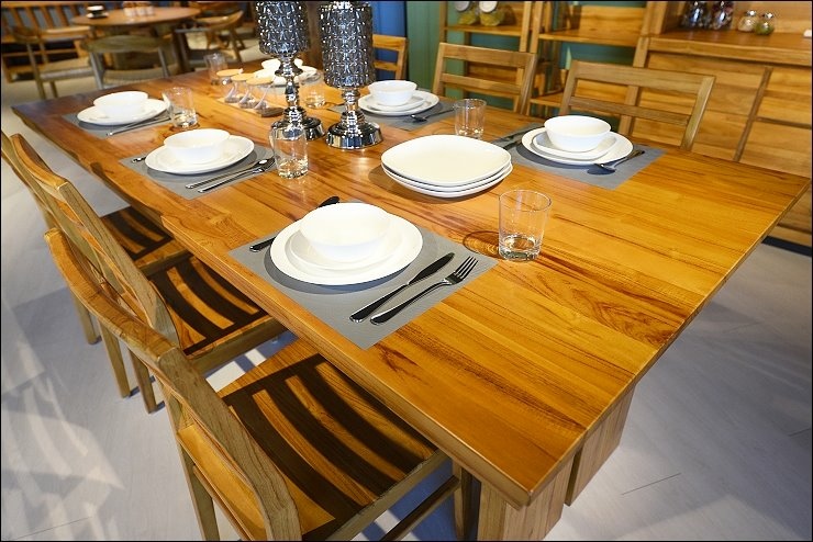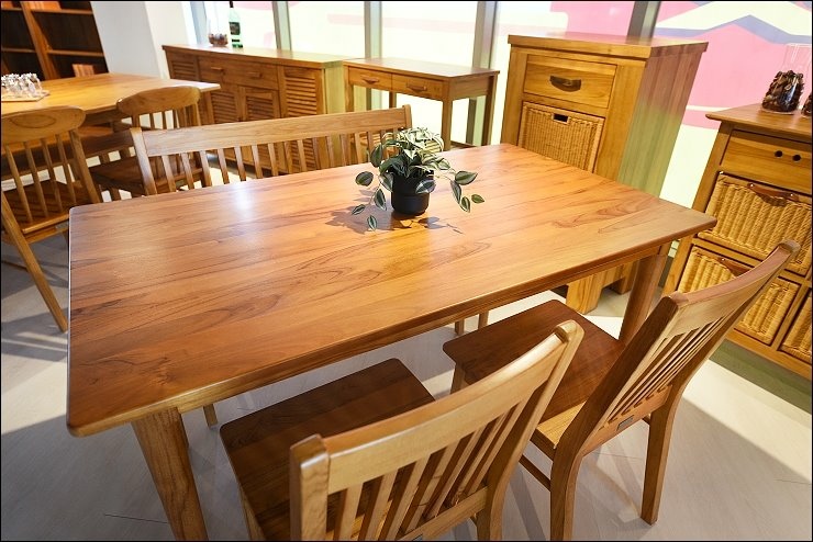 要入手柚木原木傢俱,第一大推就是餐桌!!民以食為天嘛,在家在餐桌上吃飯,吃完飯餐桌整理乾淨,變身工作桌,孩子寫功課,我呢則是開筆電啟動工作模式!!歐克斯柚木台北內湖旗艦店有很多款餐桌椅,來挑一張喜歡的吧!