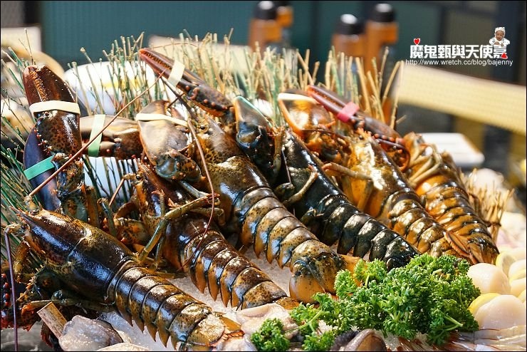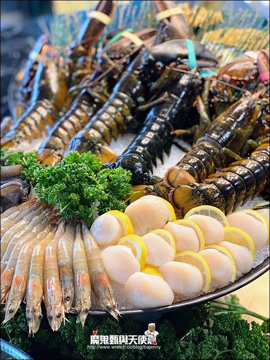 內含6隻鮮活波士頓龍蝦、九孔鮑魚、干貝等澎湃海鮮盤。