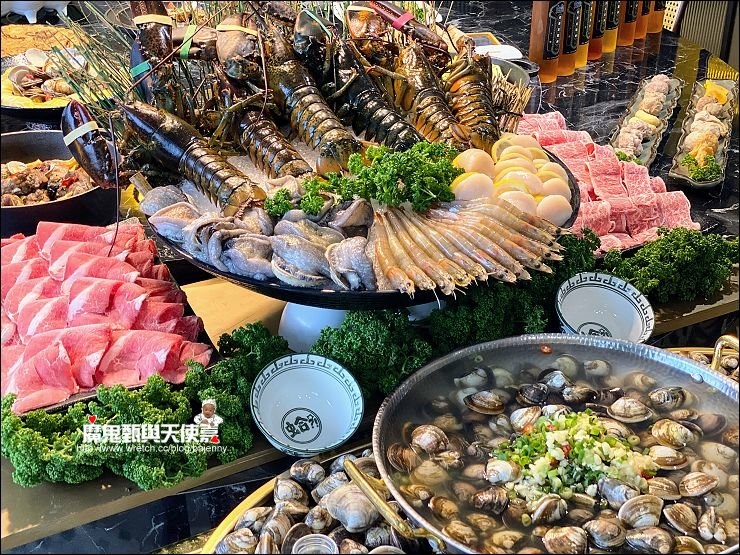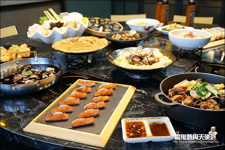 這種溼冷溼冷的天氣真的好適合約三五好友大啖火鍋喔~尤其是年底歲末迎新之際,這種有噱頭主題的巨蛤宴,更是尾牙趣味首選!!公司福委會如果選這種當尾牙菜色超給老闆面子,因為員工們看了就有精神,吃完更是乒乓叫業績強強滾XD,原本韓國long stay回來的我還在發懶(根本不想出門),要不是好友愛吃鬼芸芸的盛情邀約還兼熱情接送,差點錯過這頓好吃的饗宴。行前擔心都是海鮮沒有肉肉(畢竟我是無肉不歡的人),結果一整個想太多,不止有30盎司大肉盤(安格斯無骨牛小排好好吃),還有包廂限定片皮鴨(我吃了兩捲,爽),然後港式功夫菜香檸叉燒我偷吃好多(噓),更別提諸多活跳海鮮大拼盤了,我最愛生食級的大干貝跟鮮活九孔鮑,那天其實有兩位成員正開始飲食控制,無法放開來享用,真是太浪費美食當前了,尤其最妙的是8公斤蛤蠣做成8吃,每道口味都很不錯欸,坐我旁邊的小兔一直跟隔壁的妹妹說味道好道地,彷彿秒回香港茶樓的fu~~我們當天是在台中公益店吃的巨蛤宴,台北也有兩間分店喔(市民創始店跟忠孝店),他們家除了爆量肥美的蛤蠣火鍋,還有正宗港式點心,打破火鍋店只有火鍋的印象。