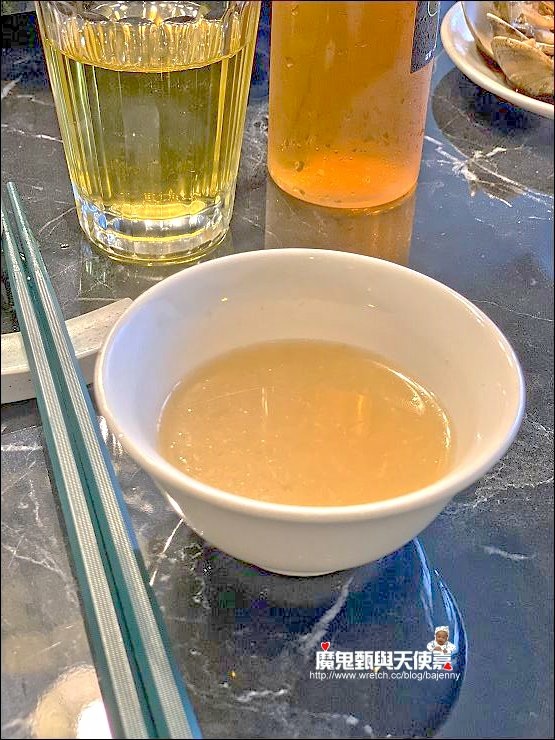 服務人員會先盛一碗清湯給客人品嘗味道,加了大量蒜頭的正宗原味卜卜蜆好鮮甜啊~~