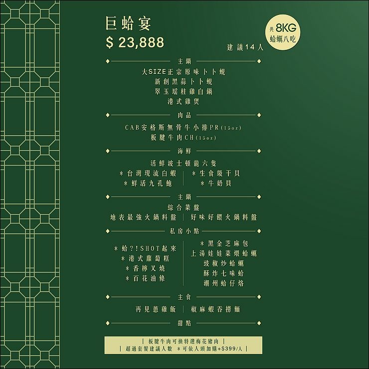 【巨蛤宴 $23,888】