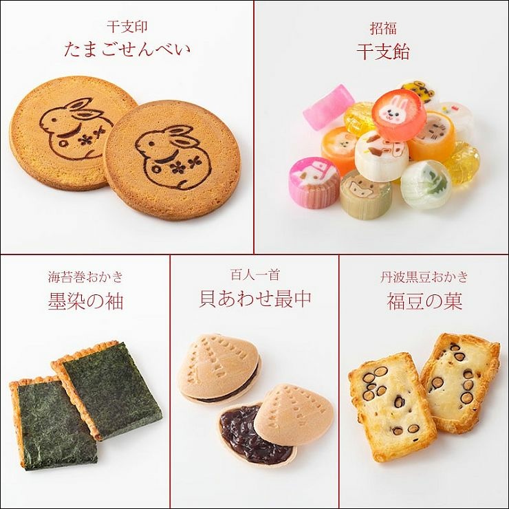 以祝賀“松茸梅”為主題,使用蝦和海帶等吉祥材料,以及帶有生肖標誌的雞蛋餅。