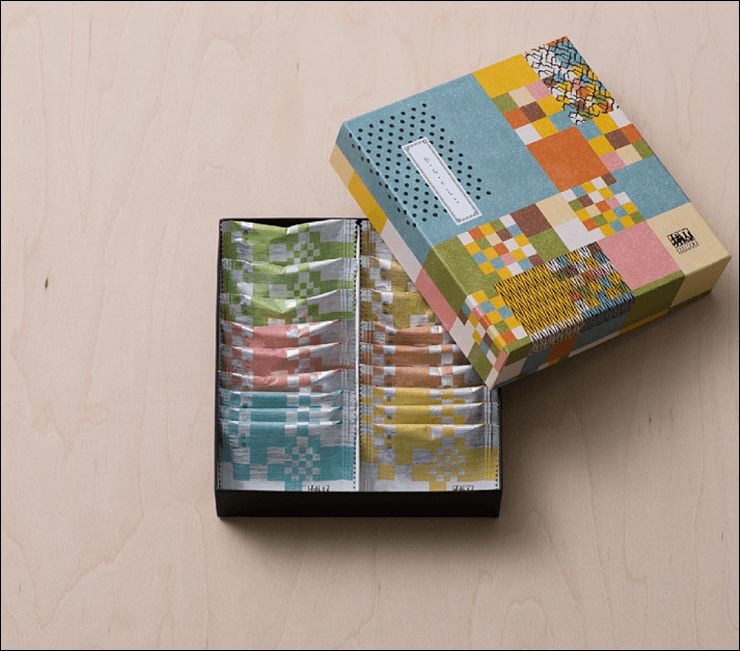 包裝盒以鑲木地板為主題的色彩繽紛的現代設計也很受歡迎。