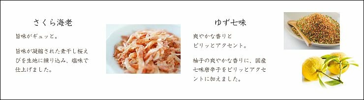 櫻花蝦:將濃縮鮮味的櫻花蝦乾揉入米餅麵團中,鹹香可口。