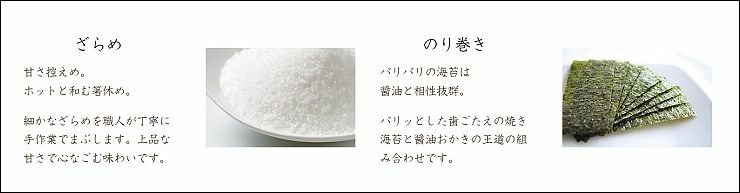 將具有優雅甜味和三盆蜂蜜灑在略帶鹹味的米餅上,製成的甜度適中,鹹味令人無法抗拒的精緻仙貝。