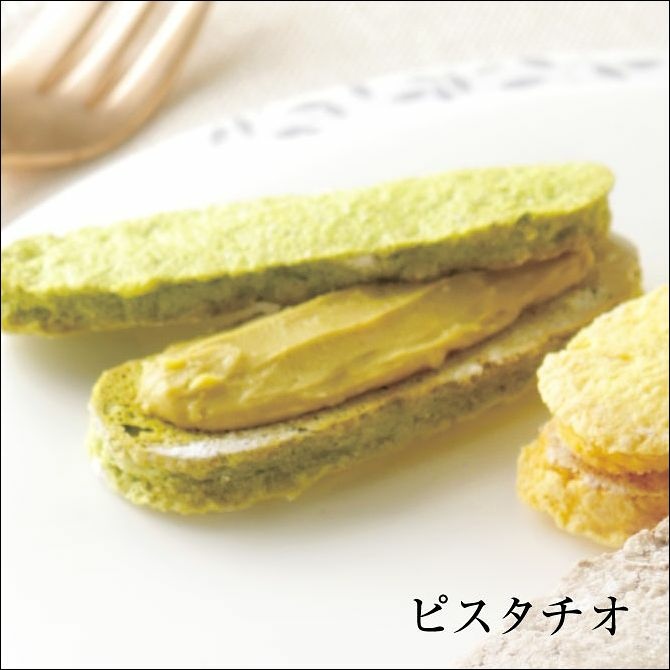 開心果夾著兩種開心果醬和白巧克力和杏仁。