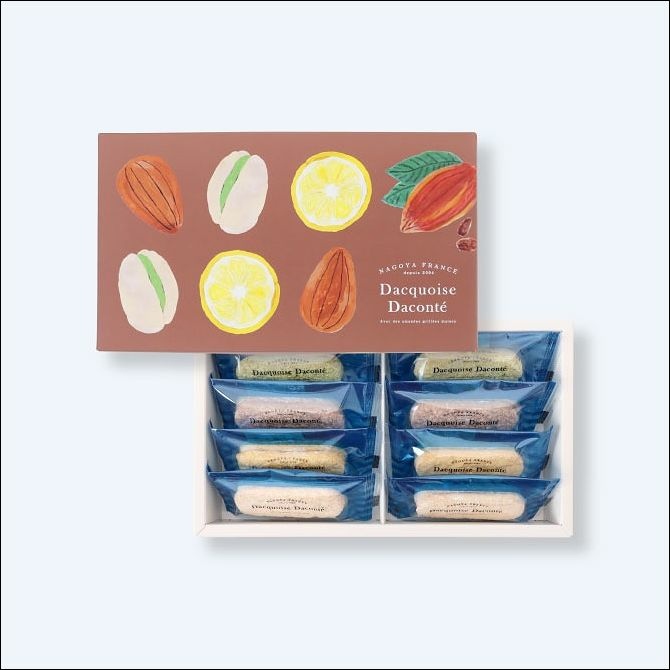 以下開始是這次的新品介紹,日本名古屋限定達克瓦茲綜合夾心餅乾禮盒,用自製的杏仁製作,製作出質地蓬鬆、質地輕盈的餅乾,並且用碎杏仁做成巧克力奶油。