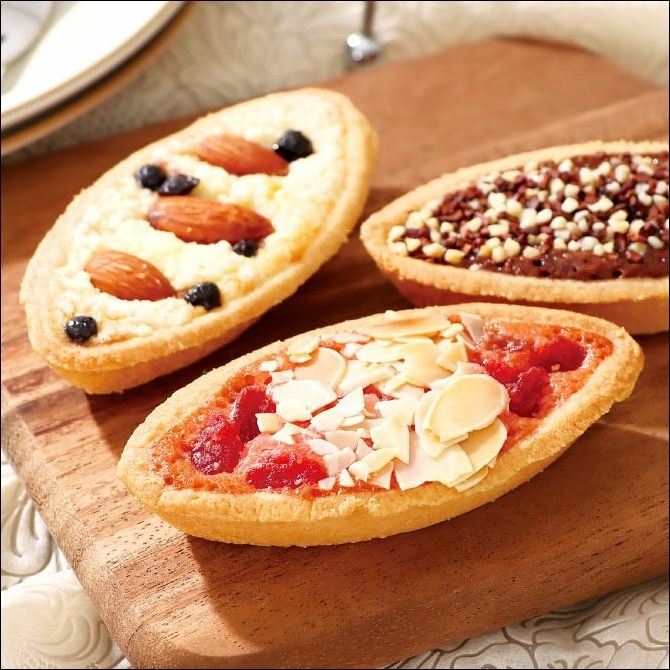 內容物:奶油鬆餅X8枚、杏仁餅乾X5枚、千層巧克力X4枚、蘭姆葡萄X3枚、巧克力脆片X2枚