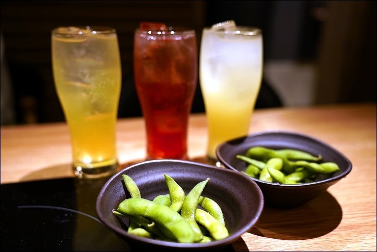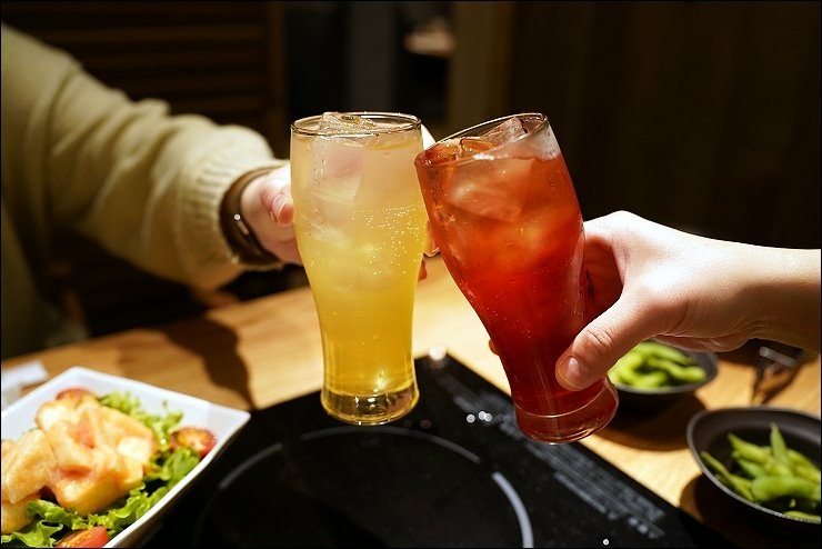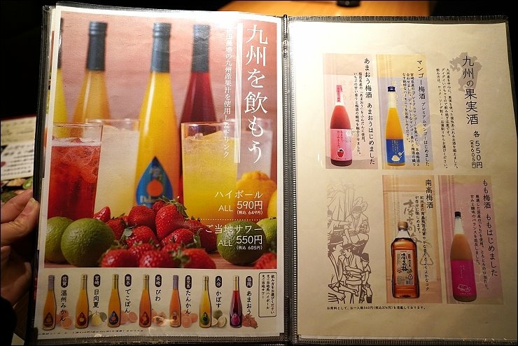 飲料有生啤、日本酒、燒酒、梅酒及無酒精飲料非常多種選擇,特別點了九州的水果酒,入境隨俗先點飲料,乾一下!(※警語:開車不喝酒,喝酒不開車※)