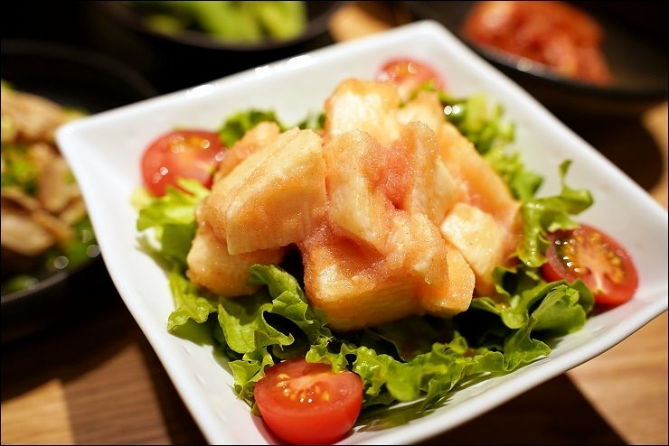 山藥博多明太子沙拉,明太子是博多必吃特產,與口感黏稠的山藥搭配,明太子吃起來有一點點辣帶上本身的鹹度,我喜歡!