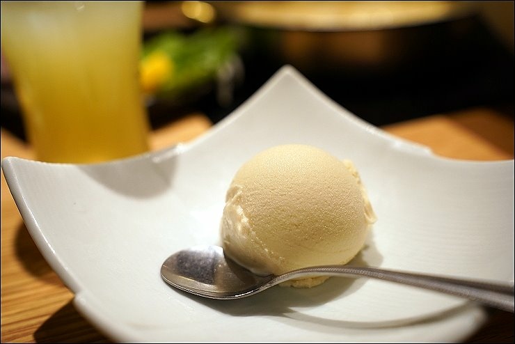 加入大山牛腸鍋的LINE會員,出示LINE畫面就免費獲得九洲醬油冰淇淋一球,微甜,有一點點醬油的鹹味,在吃完牛腸鍋後來一球真舒服!