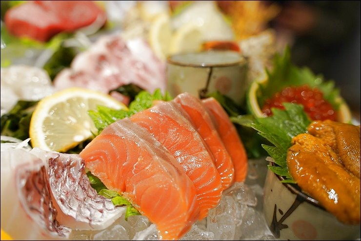 鮭魚雖不是油脂滿滿的鮭魚肚,肉質也算嫩。12種魚刺身,每種四片,超大一盤滿滿的綜合海之寶,滿滿的蛋白質吃了也不會負擔很重。