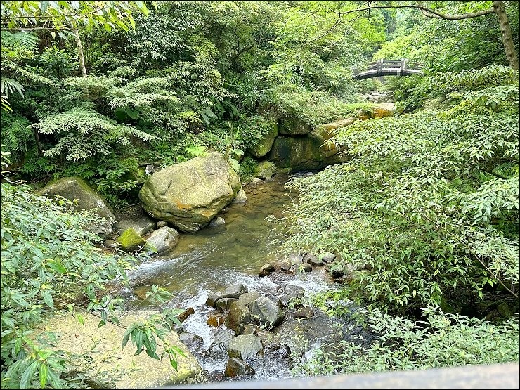 之後則是出現一座木棧橋,而橋旁就是東勢坑溪谷峽谷地形。再往裡走可以看到峽峽谷,經過東勢坑溪數萬年來的沖刷,才形成這般美麗的地形,大自然的鬼斧神工真的讓人嘆為觀止。