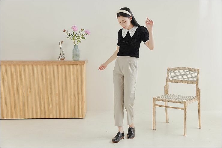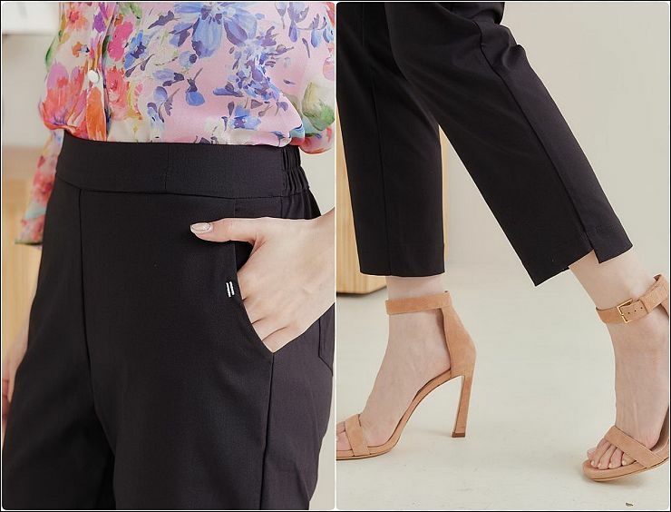 這件真的很好穿,黑色基本色,卵石灰時尚低調,腳管的地方不單調,配高跟涼鞋尤其好看!