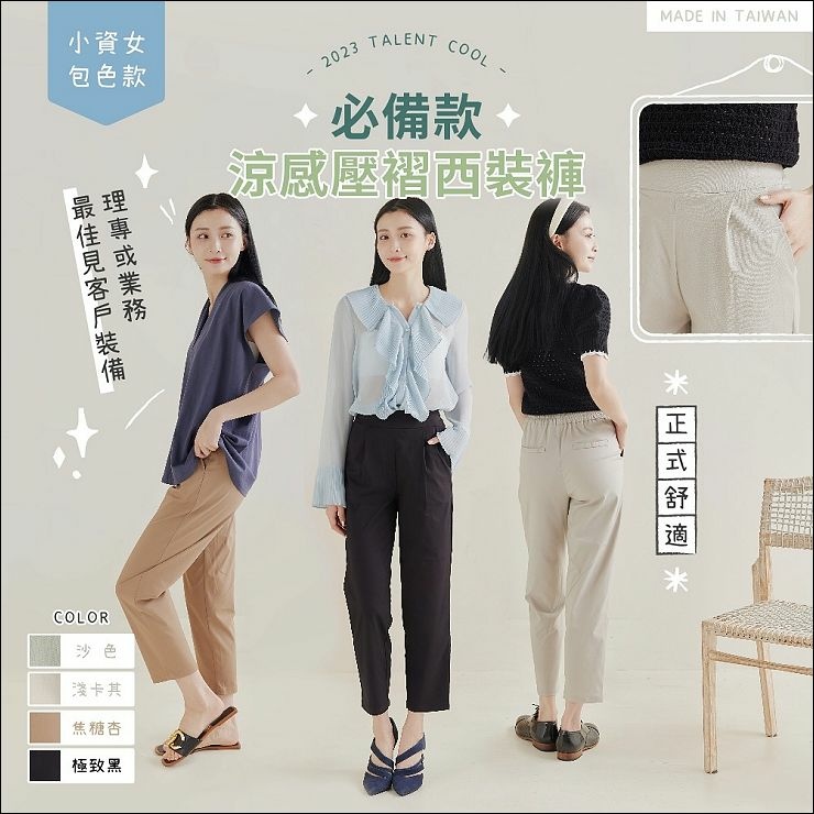 還有涼感褲很適合每天通勤的上班族小資女,超彈性久穿也不悶熱,重點是搭配不同的上半身,可正式可休閒。