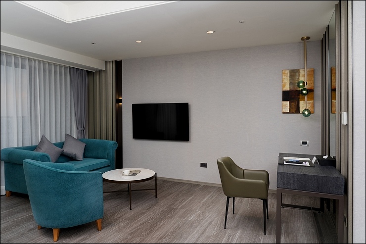▲揮別過去房間較有歲月感及古典路線,全面翻新房間內裝,近16坪的寬敞房間空間,簡潔的木質地板,呈現明亮簡約的設計,還有備有小客廳區域及浴缸,很適合全家人一起耍懶吃東西看電視。