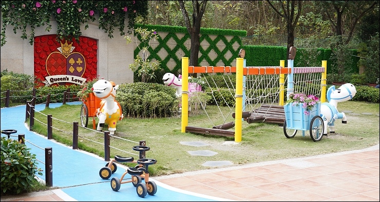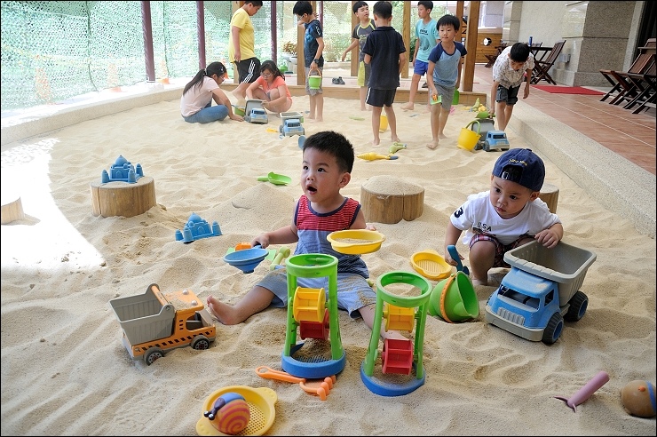 ▲飯店兒童遊戲區域非常豐富,戶外區「童趣樂花園」的大型沙坑、搖搖車、手足球、空氣足球及孩童攀爬遊戲的遊樂設施,而室內區的「歡樂小天地」則是提供多款木質玩具,會比較適合年紀較小的孩童。