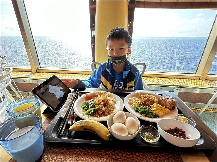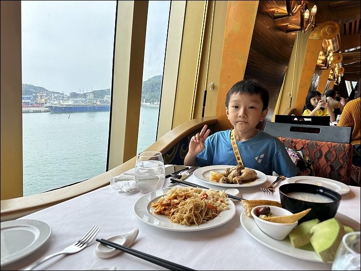 因為第一次坐郵輪,我們11點半就到基隆車站,想說可以在車站附近逛逛,沒想到報到手續很快,報到完就可以登船了!我們上船時間大概是12點多,直接被指引到餐廳用餐。