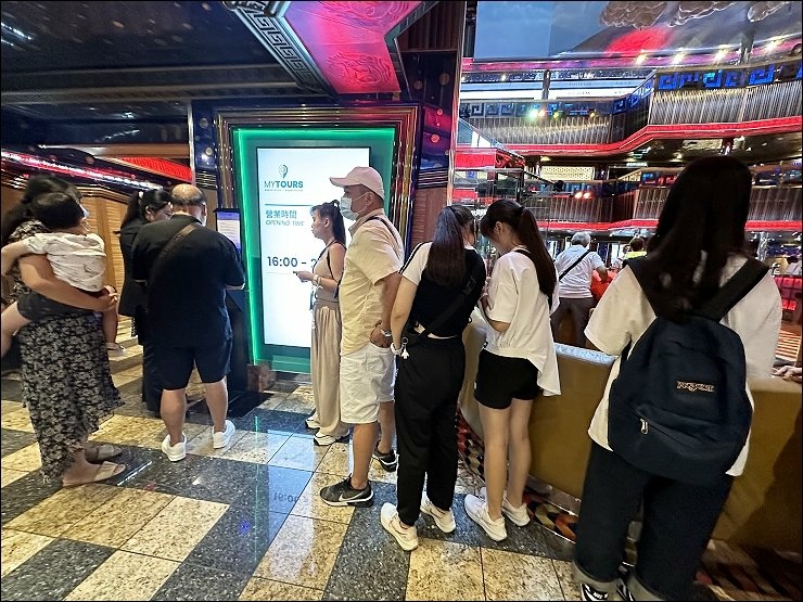 郵輪表訂16:00開航,11:30開始可以托運行李,最晚下午3點要登船。建議大家可以早點登船,可以先來餐廳吃飯玩設施!