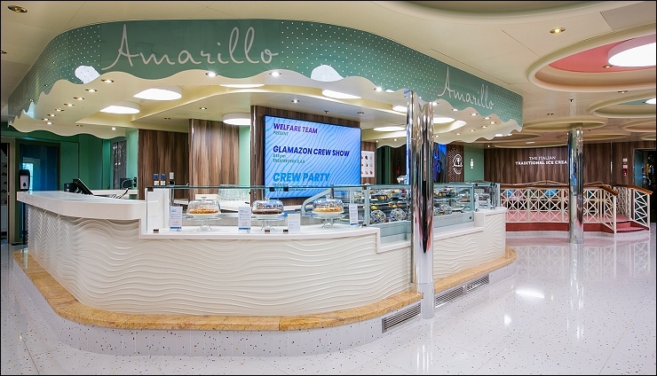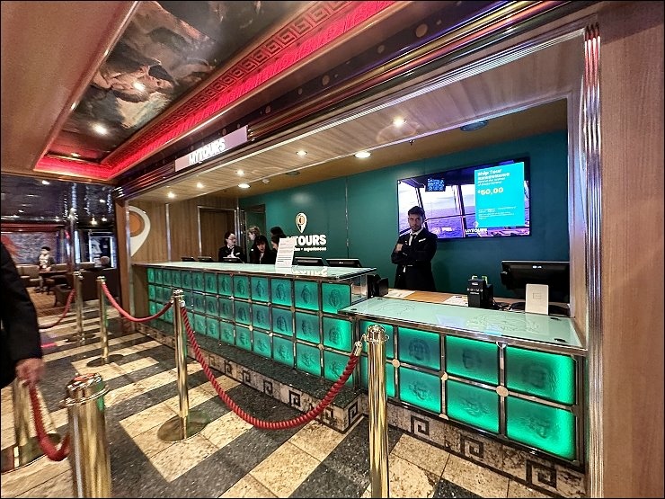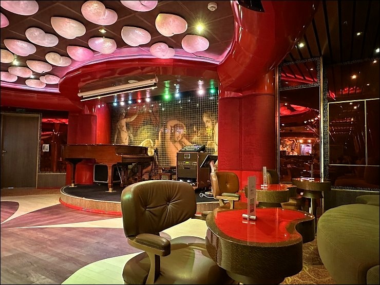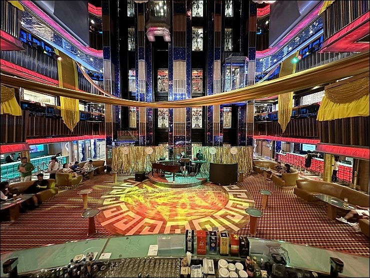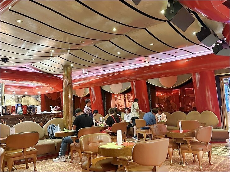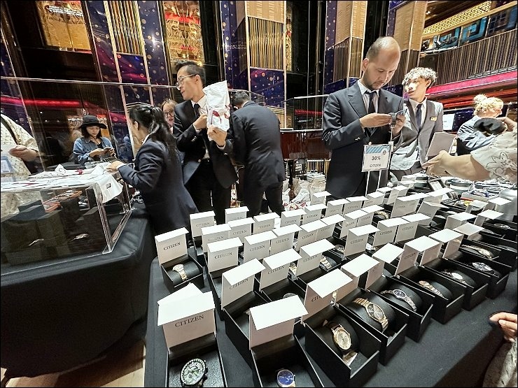 酒吧(3層)會不定時有現場演奏與唱歌,晚上跟白天風情全完不同!晚上經過這,都忍不住停下腳步,聽著現場演唱,好浪漫!白天特賣活動有名錶特賣折扣很漂亮,聽說有人花二萬買到台灣要五萬多快六萬的手錶!(時間參考船上發的每日活動表)