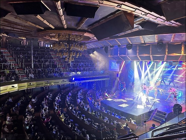 宙斯大劇院(3,4.5層),每天晚上都會有一場秀,超級精彩,跟船上的遊客聊天,大家都說,每天看這樣大秀就值得啦!我這次行程是4天3夜,第二天跟第三天晚上都看,晚上活動也好精彩!不用擔心跟用餐時間強碰,活動時間都有錯開。劇院的4樓跟5樓有樓梯要走,行動不便的長輩建議直接從3樓進場最方便。