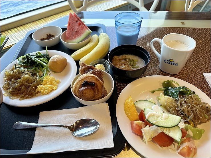 九樓中間是自助式餐廳,早餐、中餐都可以在這邊用餐,也可以在3樓用餐,因為我住九樓,而且這裡開放座位很多,二邊海景,所以早餐、午餐我都在九樓解決!
