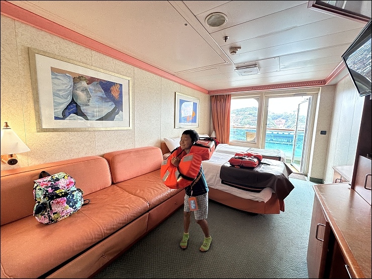 下船前一晚要把託運行李綁上行李條,行李條有顏色區分,大家最後一天早上也可以輕鬆吃早餐,可以在陽台看海、或是到甲板吹吹風,到被分配到的下船時間再下船就好了,不然只是擠一堆人排隊。