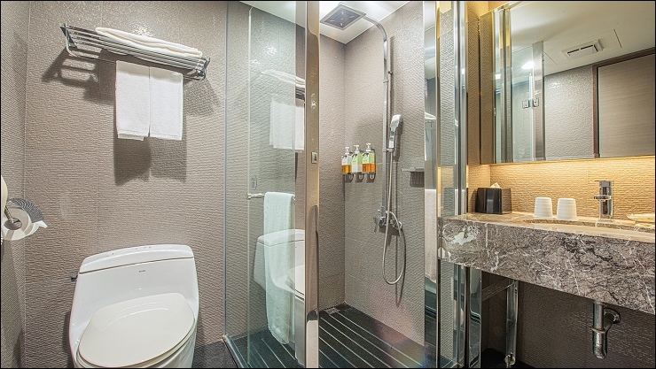 飯店大廳新穎明亮寬敞有質感,三個櫃台,辦理入住需要稍等,可在旁邊沙發區稍作休息。退房手續就快多了!