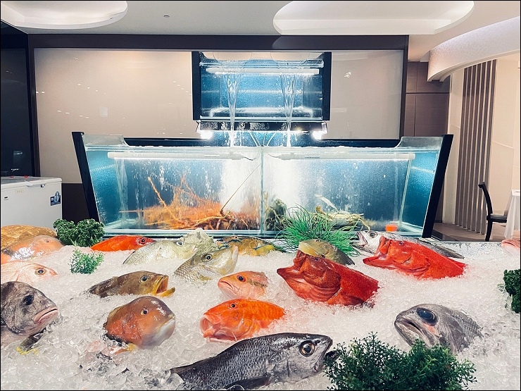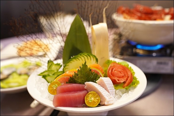一泊二食晚餐在阿利海鮮吃到新鮮活跳跳的龍蝦海鮮火鍋,除了火鍋,我們家還有再另外加點,生魚片很新鮮。