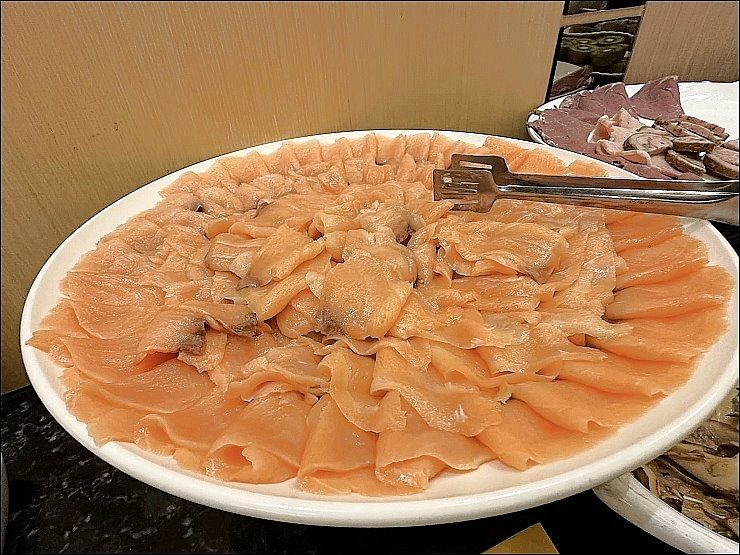 早餐是在永豐棧的B1宴會廳用餐(過個馬路就到),專攻現燙牛肉湯,喝了好幾碗爽度好高,燻鮭魚、蒸魚、獅子頭、青菜、海瑞貢丸湯、生菜沙拉、飲料等等,本來吃飽打算要回房間了,竟然還看到水煮白蝦,只好又拿了一大盤,這早餐菜色出的很有誠意,讚!(特別提醒大家,部分照片為飯店提供公關照,部分照片為入住時實際拍攝,飯店會依季節食材調整當日菜色。)