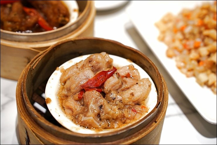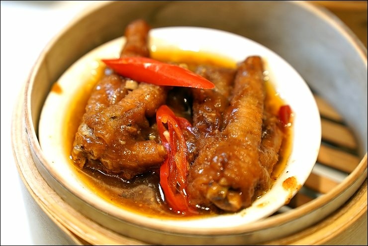 很快的港點跟飲料都陸續上桌,輪著點的人氣港點:鮮蝦腐皮捲、豉汁鳳爪、臘味蘿蔔糕、檀島愛餡油條,豉汁鳳爪很軟爛到了入口即化的程度,口味帶一點辣很過癮;鮮蝦腐皮捲外頭腐炸的酥酥的,裡頭的蝦餡真美味,不過建議剛炸出來熱熱的吃最好吃;還有單點原只鮮蝦餃皇皮薄餡滿,吃的到滿滿的蝦肉,愛吃蝦的同好們這道不要錯過,小孩也很喜歡。