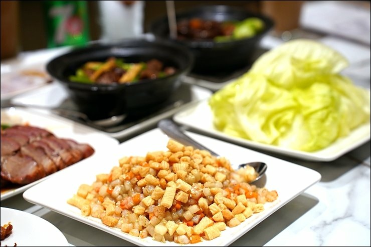 檀島香港茶餐廳提供的菜色除了各式港點,還有每日限定的商業午餐,及大江獨家限定菜色,點菜用手機掃QR code直接點菜,非常方便。這次六人行來到檀島,檀島大江獨家限定菜色:薑蔥燒鴨煲、蒜蓉蒸鮑魚、生菜脆蝦鬆當然要試試(11/1-11/30期間限定)!四人分享餐(10/6-10/29期間適用)含「點心」鮮蝦腐皮捲、豉汁鳳爪、臘味蘿蔔糕、檀島愛餡油條,「主菜」有海龍皇爆炒石斑、北菇栗子炒雞球、秘制原汁牛腩煲、蠔油芥蘭,及「煲湯」靚例湯x4,「主食+飲料」白飯4碗、港式飲品任選4杯(不含酒精飲料),特價2400吃飽飽!