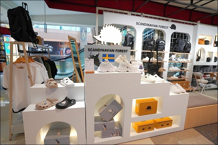 北歐小刺蝟(4F),來自瑞典的品牌,從 FÄRG&FORM 誕生的動物概念品牌,一開始產品比較是北歐雜貨,再開發更多充滿北歐風格的產品,深受日本人的喜愛!櫃上有衣服、帽子、包包、鞋子等產品,紅翻天的老爹鞋也是熱銷商品!