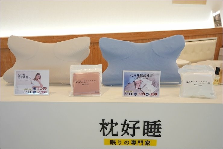 近年流行的蝶型枕頭枕好睡-眠りの専門家(GB樓)是台灣本土設計的品牌,號稱讓人一覺到天亮的秘密,每 6 秒就賣出一顆,更有國外飯店指定枕好睡的枕頭!講求符合人體工學構造、更貼合肩頸的自然曲線、更好的支撐性,歡迎大家進店試躺。